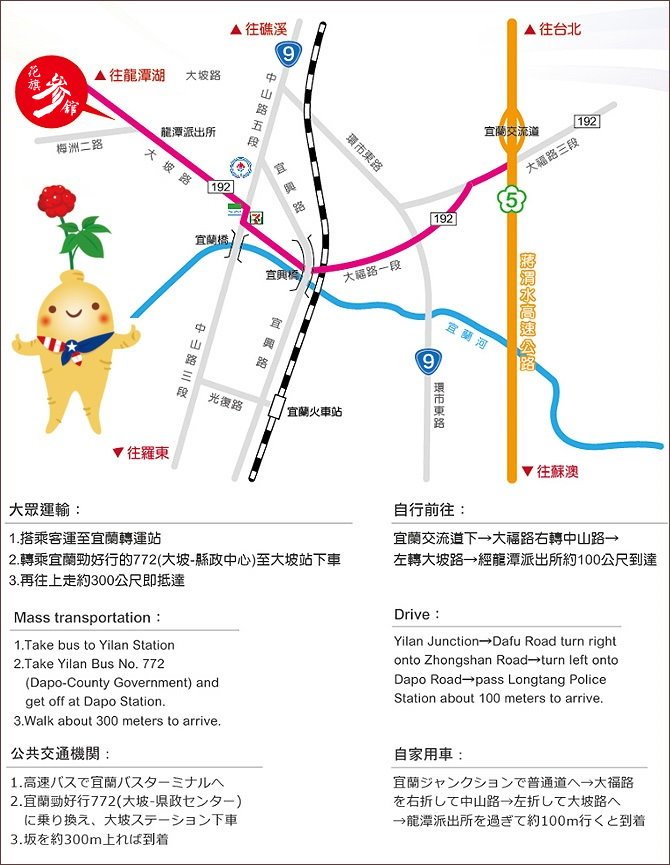 為了當地的地域特性,我們繪製了更方便您參考的交通指引,請您參考。